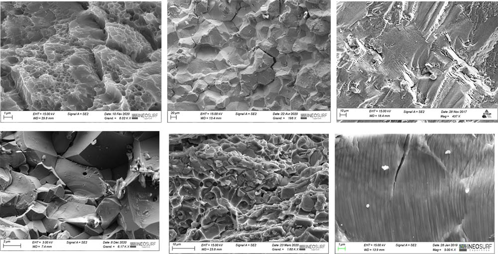 Les compétences multidisciplinaires de nos ingénieurs combinant notamment la fractographie, la métallographie, les analyses physico-chimiques associées aux équipements de dernière génération (MEB FEG, Spectromètre EDS, spectromètre ICP, microscope interferentiel, polisseur ionique, ….) de notre laboratoire sont à votre service pour prendre en charge les problématiques liées à la rupture, l’usure, la corrosion et toutes les dégradations affectant vos pièces métalliques.